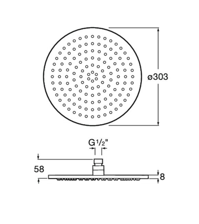Κεφαλή ντουζ Raindream Ø30cm Extraslim χρωμέ Roca.