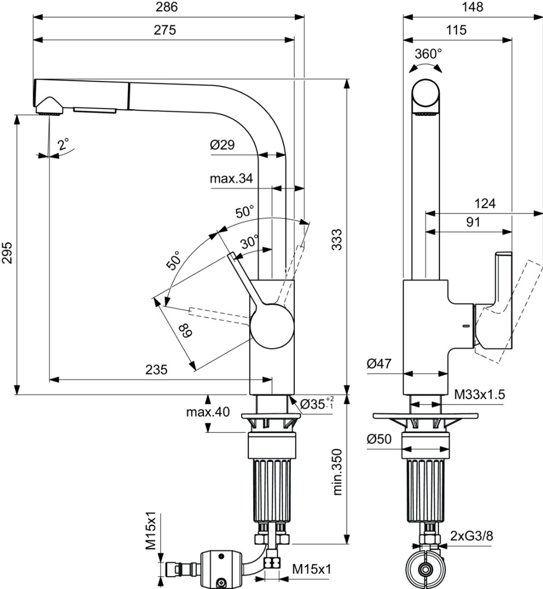 Με Easy Fix+ για εύκολη στερέωση και με εύκαμπτους σωλήνες G3/8″ για σύνδεση παροχής νερού, σε χρωμέ φινίρισμα από την Ideal Standard.