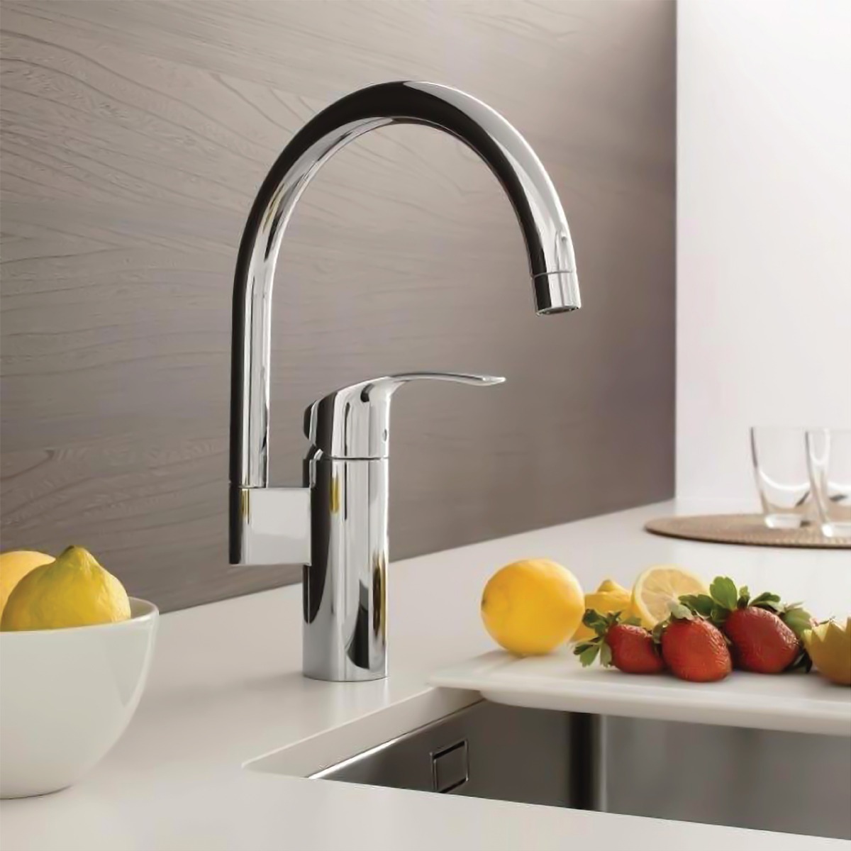 Μπαταρία νεροχύτη κουζίνας με υψηλό ρουξούνι, της σειράς Eurosmart από τη Grohe.