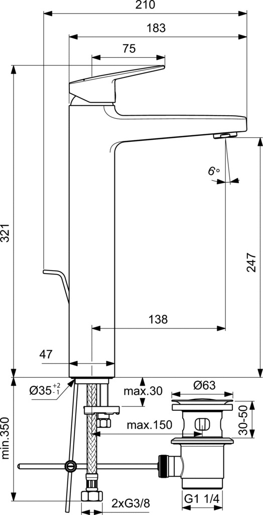 Αναμεικτική μπαταρία νιπτήρα ελεύθερης τοποθέτησης Ceraplan IV Ideal Standard. Mίας οπής με κεραμικό φυσίγγιο 38mm Firma Flow με περιοριστή ζεστού νερού.