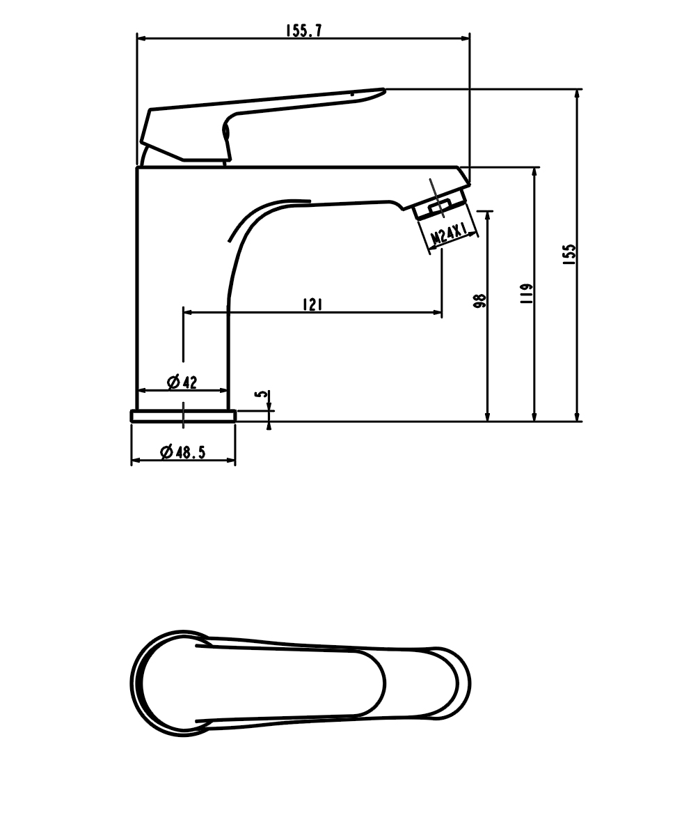 Μπαταρία νιπτήρος της σειράς Dream, μονής λαβής, αναμεικτική με σπιράλ σύνδεσης και αυτόματη βαλβίδα