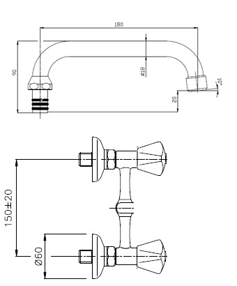 Μπαταρία κουζίνας τοίχου χρωμέ με κάτω ρουξούνι τύπου U Spout