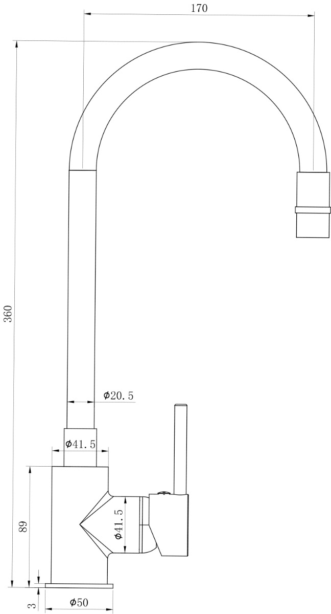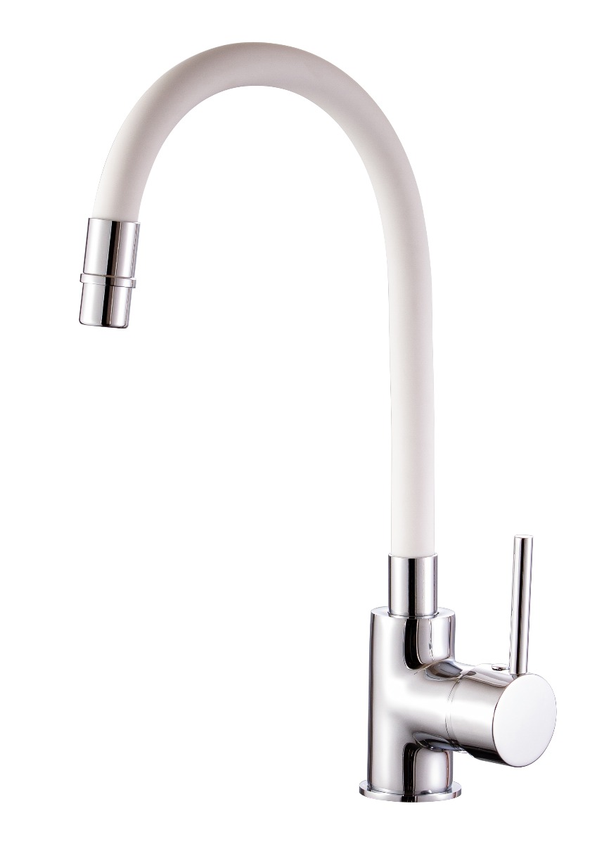 Μπαταρία νεροχύτη πάγκου της σειράς Creta Flexi από την Piccadilly. Ορειχάλκινη, αναμεικτική με μονή λαβή σε χρωμέ γυαλιστερή απόχρωση