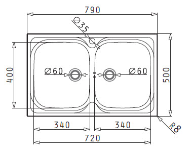 Ένθετος νεροχύτης από inox με 2 γούρνες, για ερμάριο 80cm.