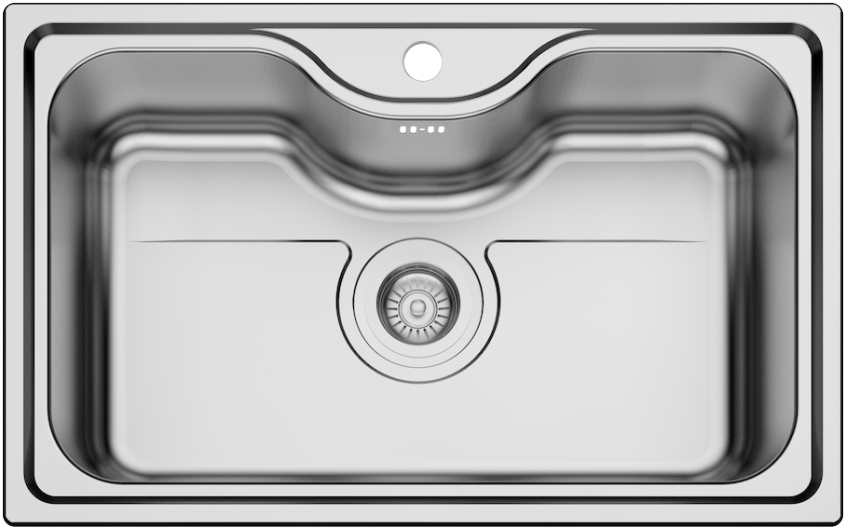 Νεροχύτης με μοντέρνο σχεδιασμό και μεγάλο μέγεθος. Διατίθεται για ερμάριο 80εκ.επιπλέον, συμπεριλαμβάνονται βαλβίδες και σιφόν ειδικά σχεδιασμένα για να αφήνουν διαθέσιμο περισσότερο χώρο κάτω από τον νεροχύτη και κλιπς εντοιχισμού.
