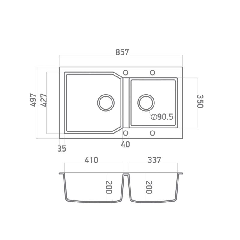 Εντοιχίζεται σε ερμάριο 90cm και συνοδεύεται από βαλβίδες αποχέτευσης με σύστημα υπερχείλισης & τα αντίστοιχα σιφόν.