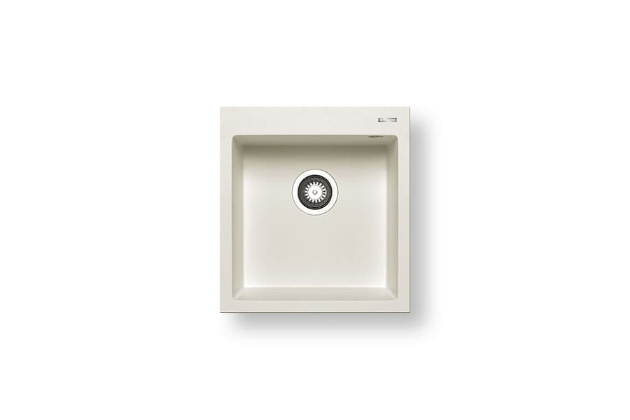 Γρανιτένιος νεροχύτης σε λευκό χρώμα Snow της σειράς Istros από την Pyramis με ματ υφή και μονή γούρνα.