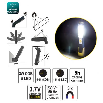 - Μαγνήτης και γάντζος: Ο ενσωματωμένος μαγνήτης και ο γάντζος σας επιτρέπουν να στερεώσετε τον φακό σε διάφορες επιφάνειες, όπως μεταλλικά αντικείμενα, εργαλειοθήκες ή κλαδιά δέντρων, αφήνοντας τα χέρια σας ελεύθερα.