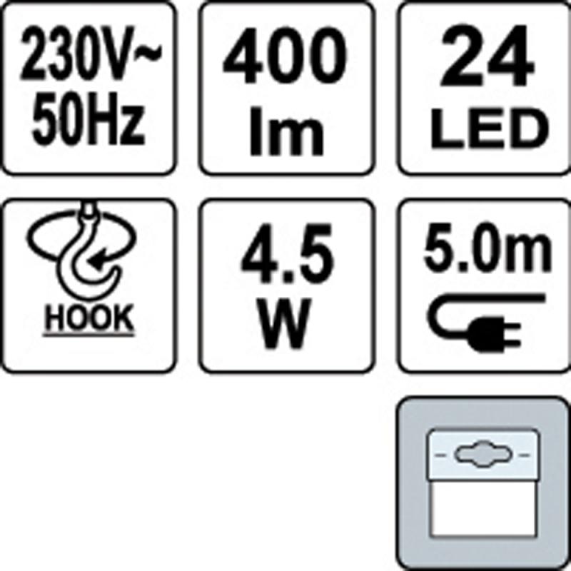 Μπαλαντέζα LED της Vorel, κατάλληλη για χρήση σε συνεργεία και όπου υπάρχει παροχή ρεύματος. Έχει ισχυρή ένταση φωτισμού που φτάνει έως 400lm.