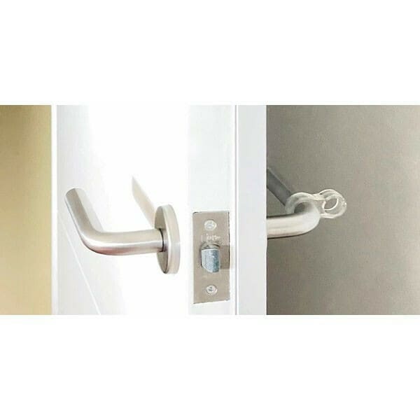 Στοπ πόρτας από καουτσούκ. Η εφαρμογή γίνεται με ευκολία, καθώς δεν απαιτούνται εργαλεία ή κόλλες. Μπορεί να τοποθετηθεί στη λαβή της πόρτας για να αποφευχθεί η πρόσκρουση με τον τοίχο.