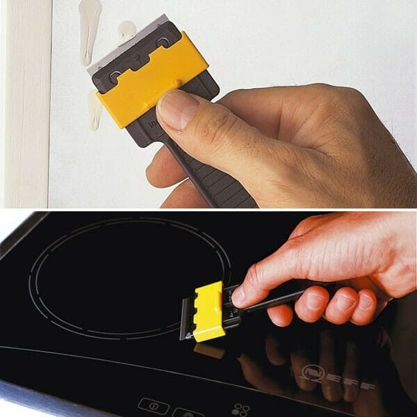 Ξύστρα για τον καθαρισμό των κεραμικών εστιών, η οποία αφαιρεί τα υπολείμματα από καμένες τροφές χωρίς να καταστρέφει την επιφάνεια της εστίας. Κατασκευασμένο με ανθεκτική πλαστική λαβή.