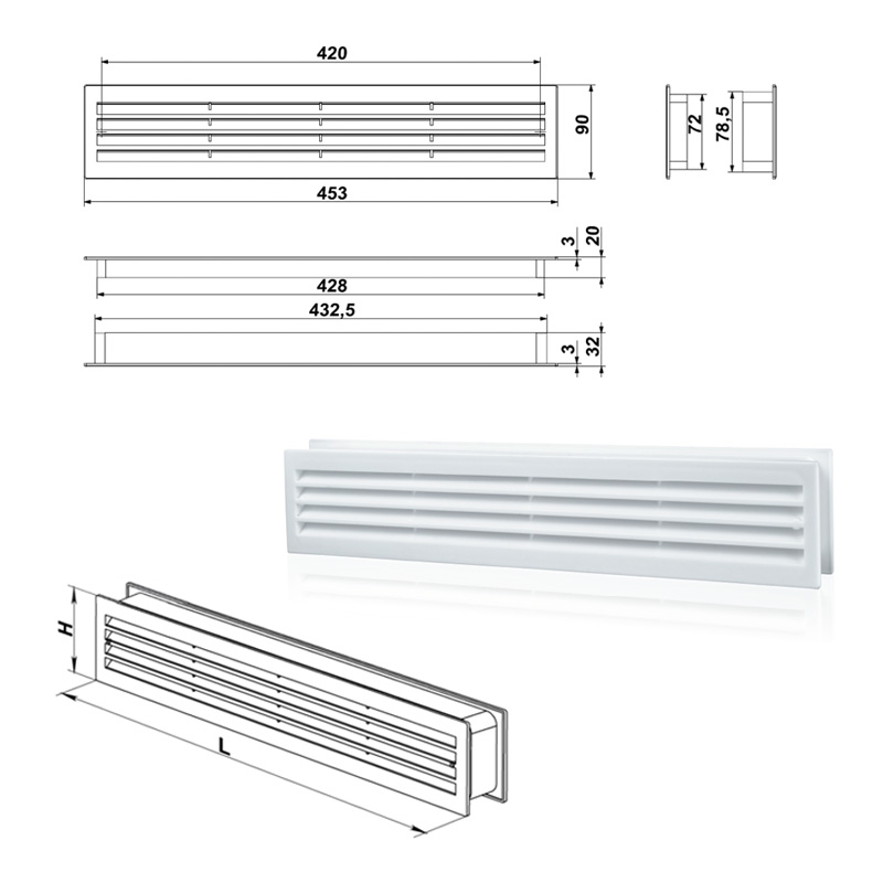ΠΕΡΣΙΔΑ ΕΞΑΕΡΙΣΜΟΥ 453Χ91mm ΓΙΑ ΠΟΡΤΕΣ, ΛΕΥΚΗ
