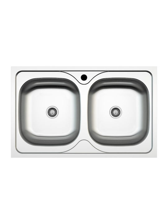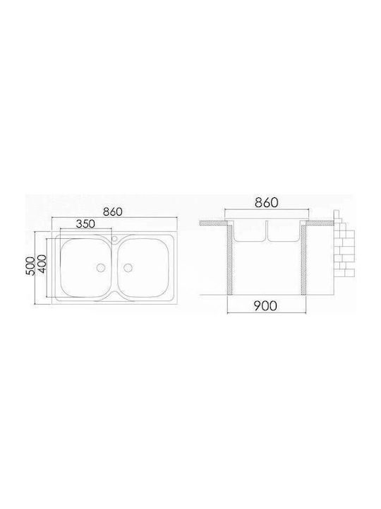 - Ανοξείδωτος ένθετος νεροχύτης με δύο γούρνες, INOX λείο της EXCEL